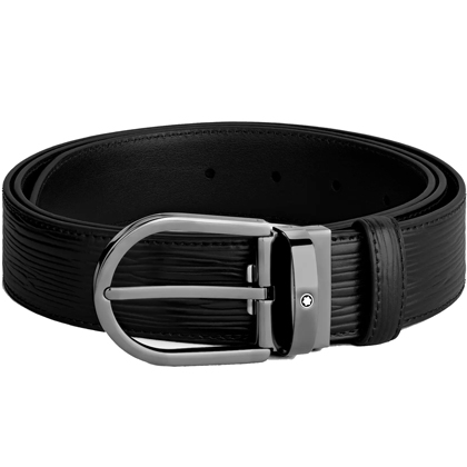 Черный кожаный ремень с подковообразной пряжкой 35мм от магазина премиальных ручек Premium Pens в Балашихах.