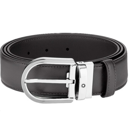 Кожаный ремень с пряжкой в форме подковы серого цвета 35 мм от магазина премиальных ручек Premium Pens в Балашихах.